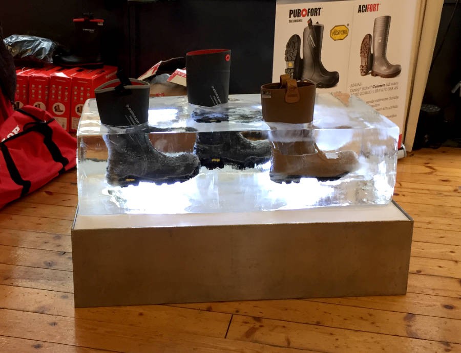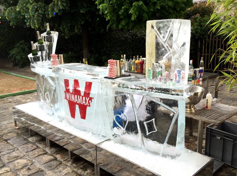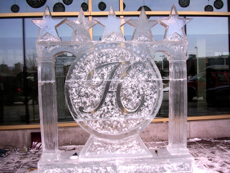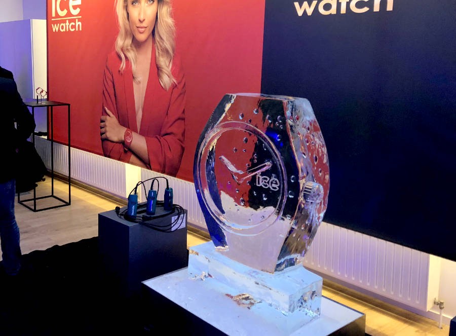 Votre identité visuelle mise en avant dans un bloc de glace. Nos services vous proposent la mise en valeur de votre marque lors de grands événements (animations commerciales, promotions de marques…) en captant le regard du public sur ce support unique qu’est la glace.