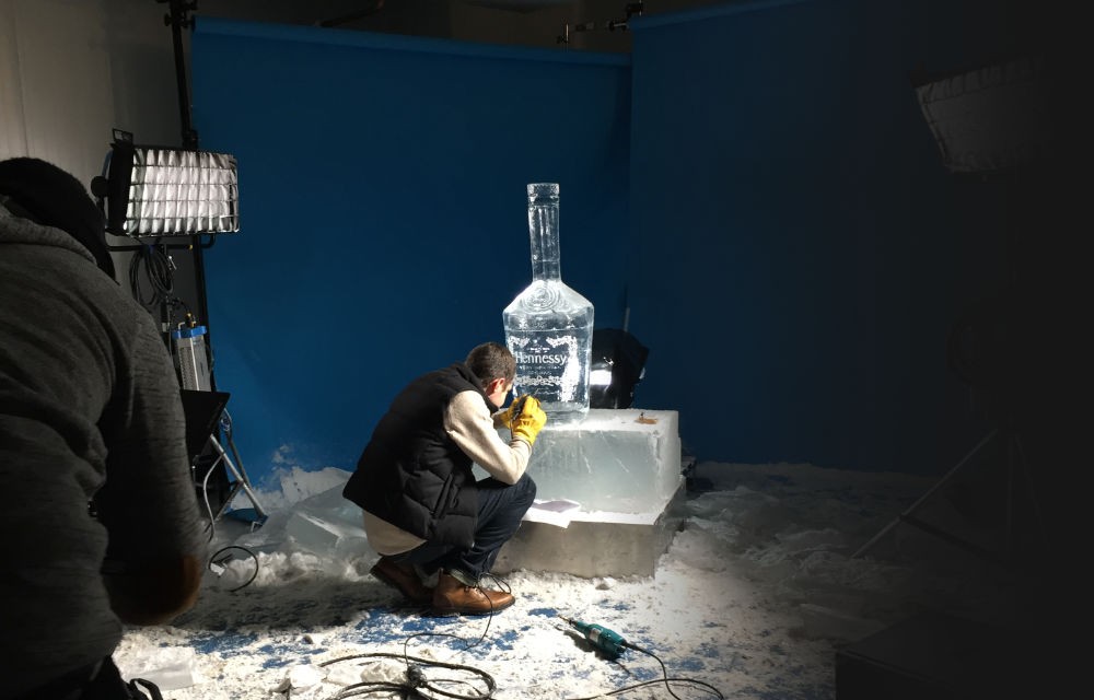 Votre identité visuelle mise en avant dans un bloc de glace. Nos services vous proposent la mise en valeur de votre marque lors de grands événements (animations commerciales, promotions de marques…) en captant le regard du public sur ce support unique qu’est la glace.