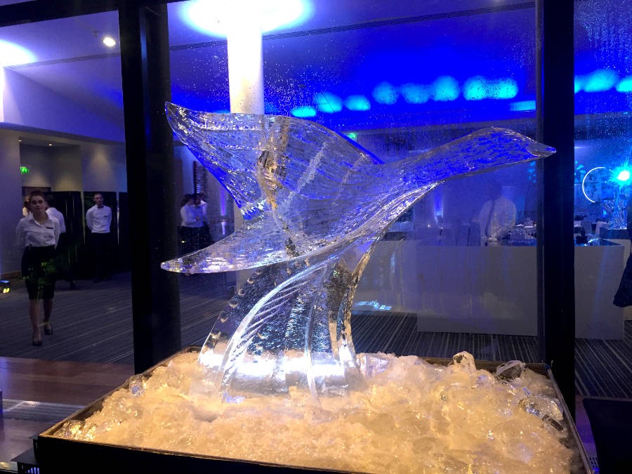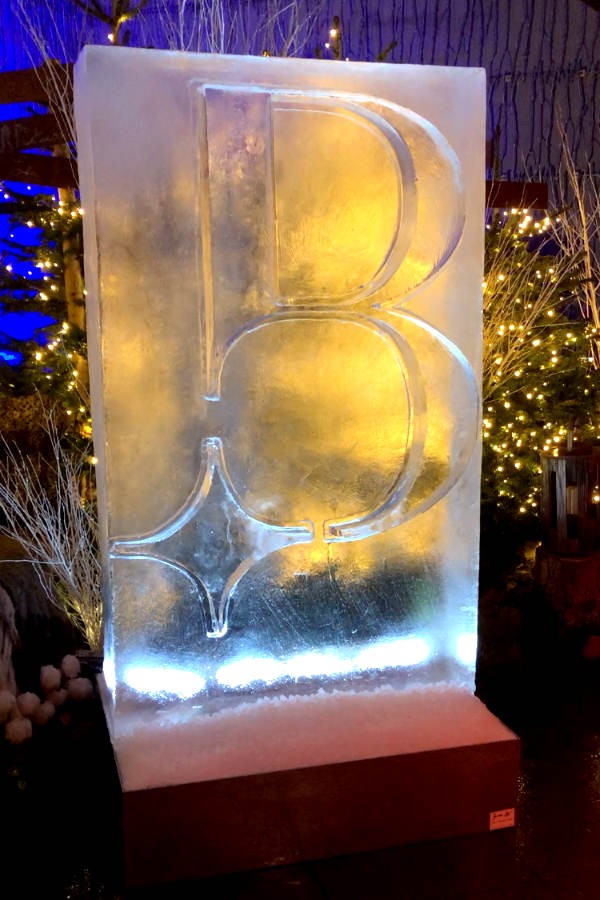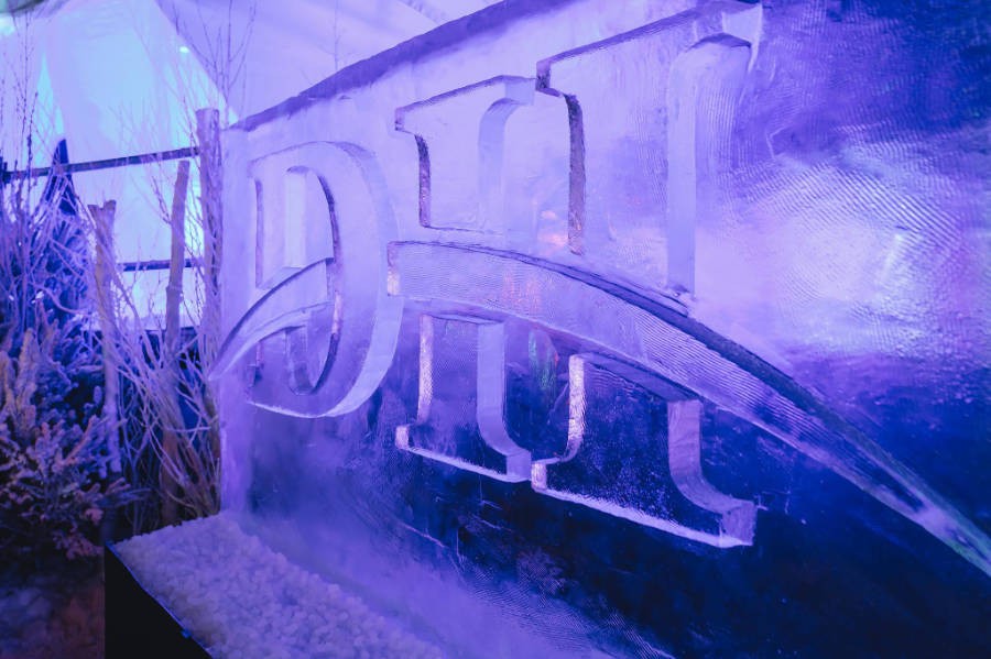 Votre identité visuelle mise en avant dans un bloc de glace. Nos services vous proposent la mise en valeur de votre marque lors de grands événements (animations commerciales, promotions de marques…) en captant le regard du public sur ce support unique qu’est la glace.